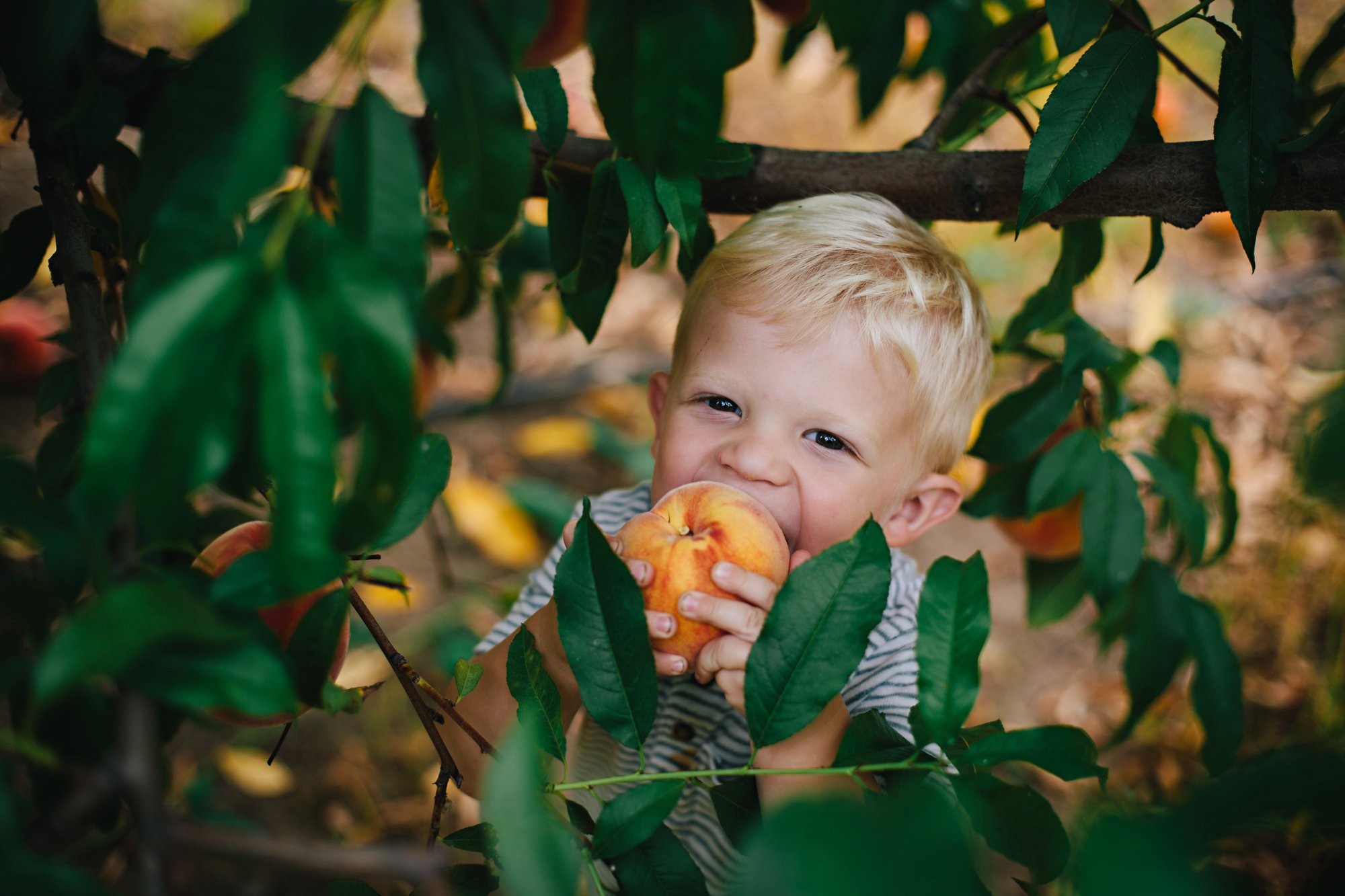 Someone kept sneaking off to steal bites of peaches while we picked! That mischievous twinkle in his eye— it’s probably not a good thing we find it so endearing!