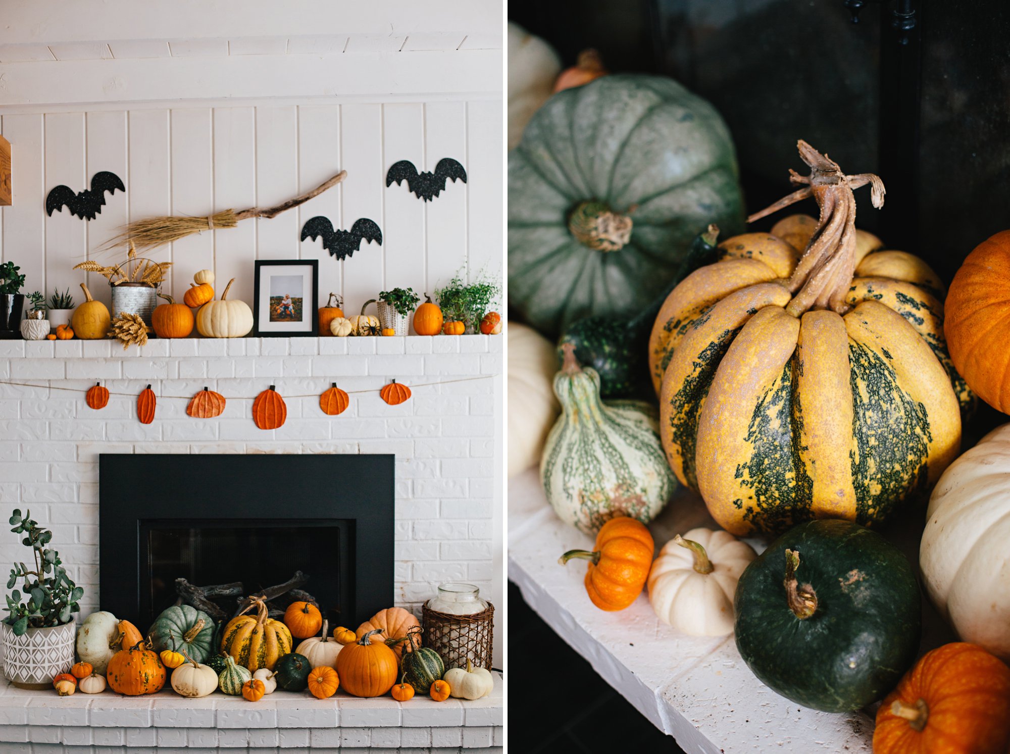 What a treat it was to decorate my very own mantel for the first time ever! I loaded the hearth with as many beautiful pumpkins as I could, and while arranging them, discovered my love of little pumpkin piles. Aren’t they the sweetest?!