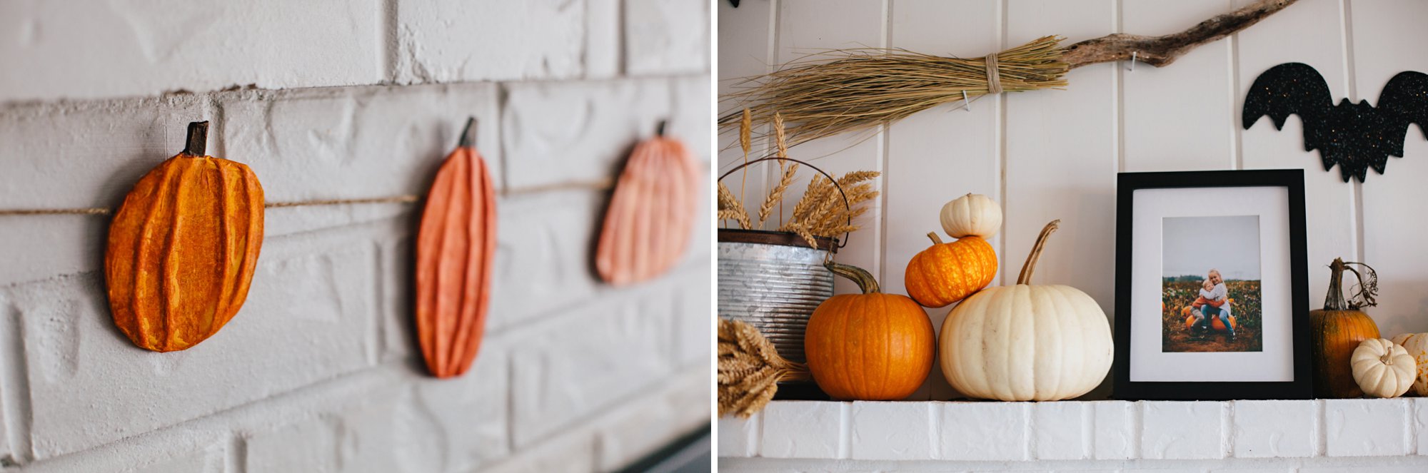 Speaking of sweet, I took Isla’s adorable cardboard up-cycled pumpkins and turned them into a garland. We just LOVE incorporating the kids’ artwork into our decor. Their creations add an extra dose love and charm to the cottage!