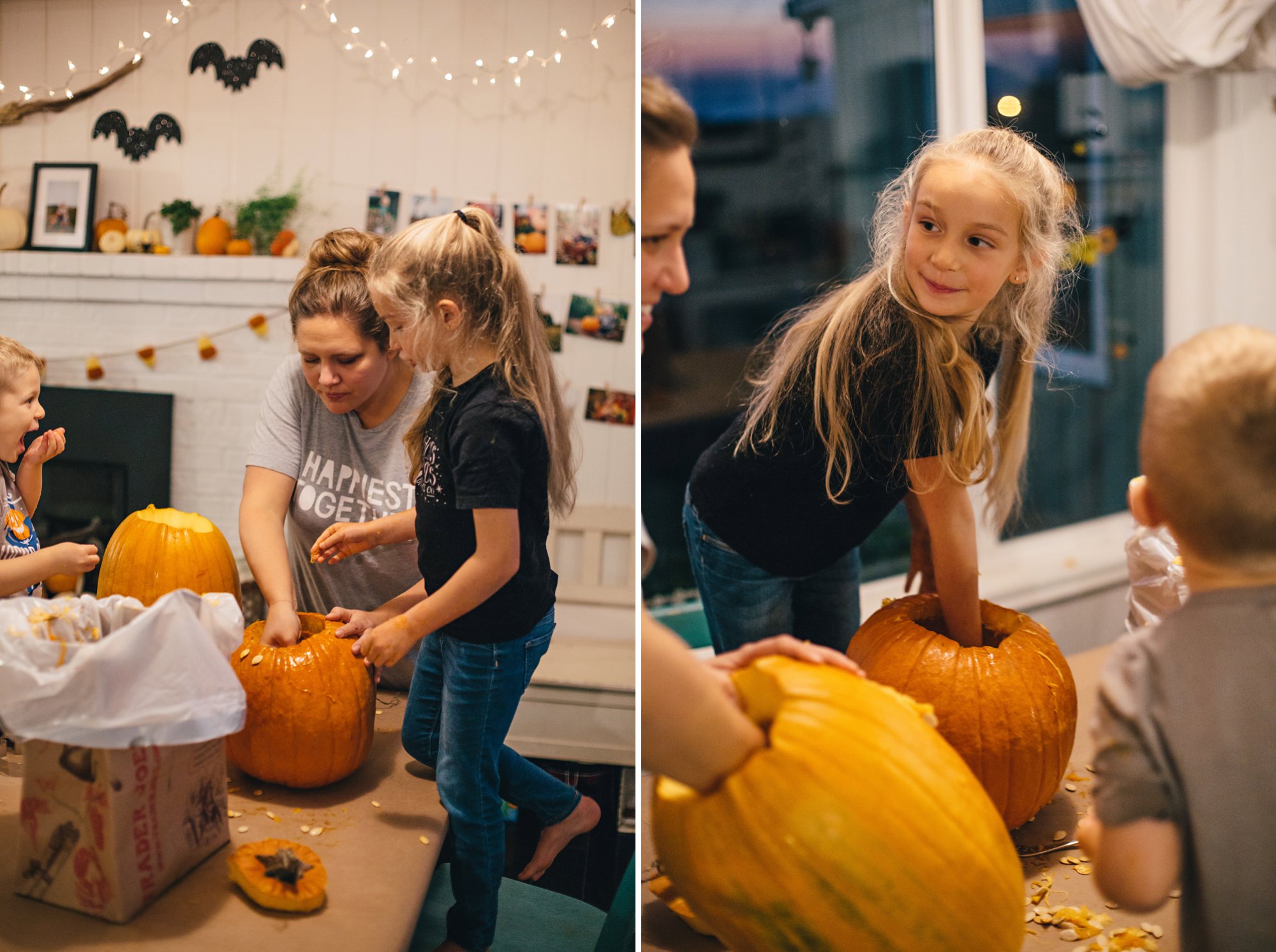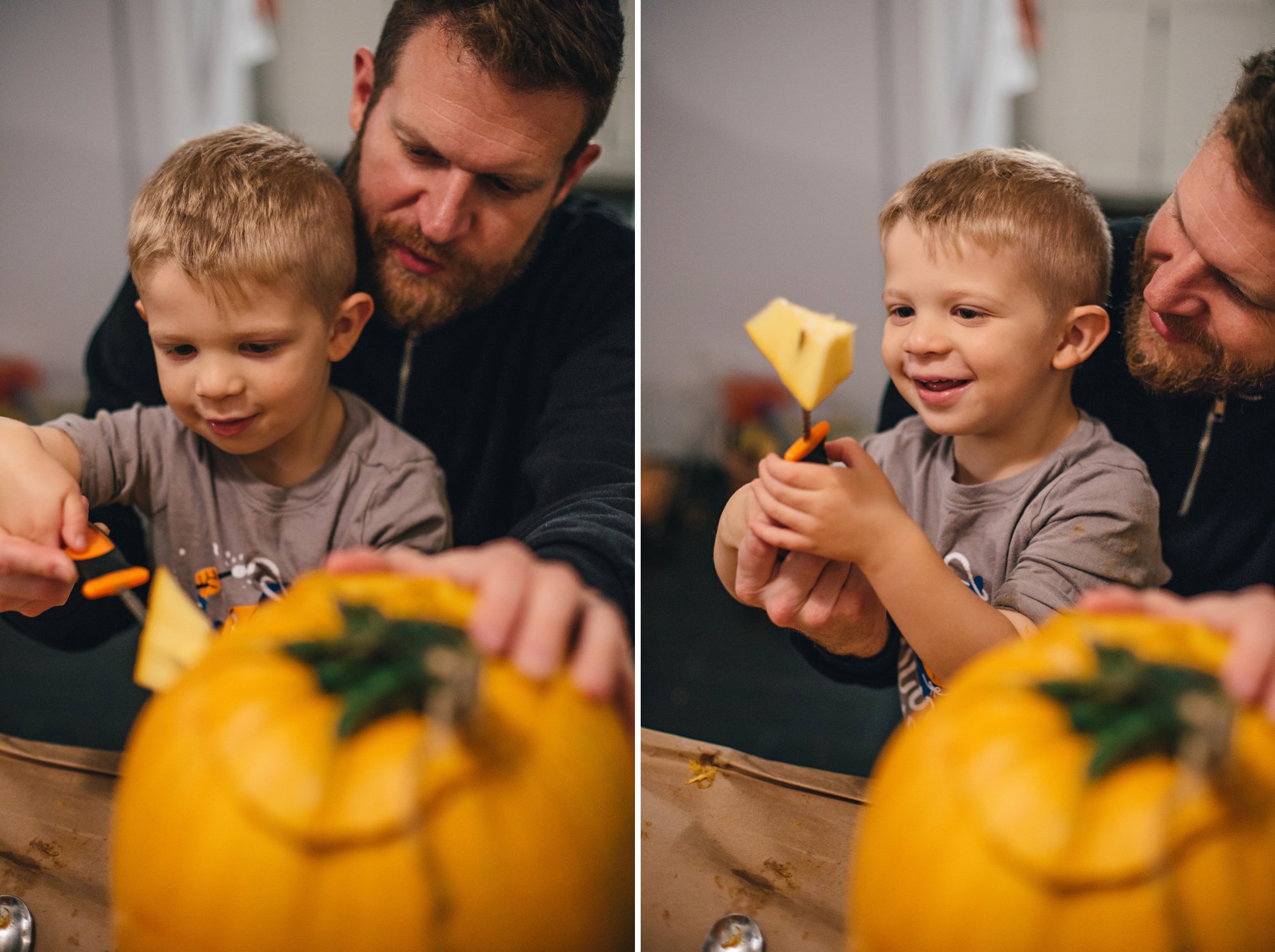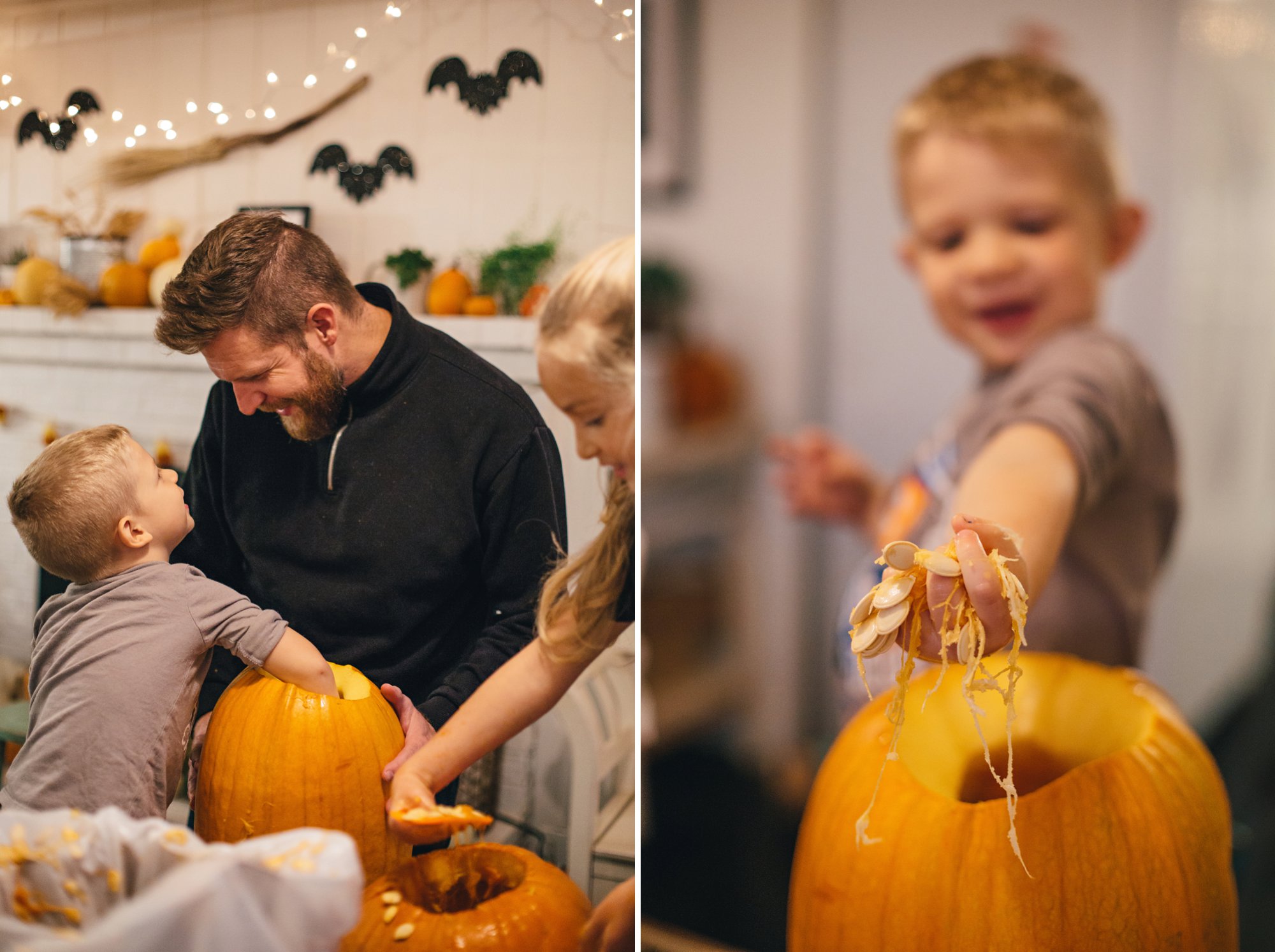 Pumpkin carving was super fun this year! The kids were so focused and eager to participate in every step of the process– even scooping out the seeds! In fact, I don’t think I have ever seen a more enthusiastic seed scooper than Cole! In the middle of it all, he looked up at us, fist-pumped, and exclaimed, “This is the best Halloween ever!”