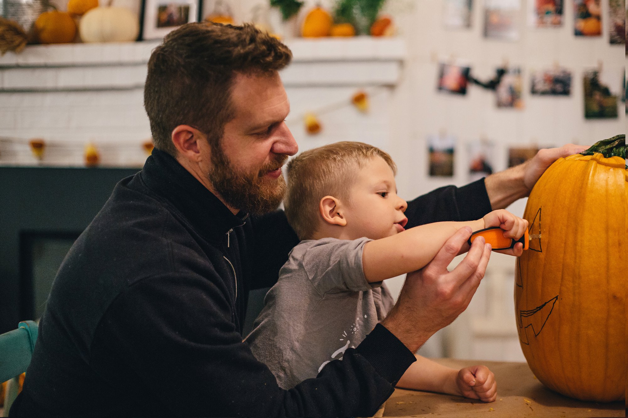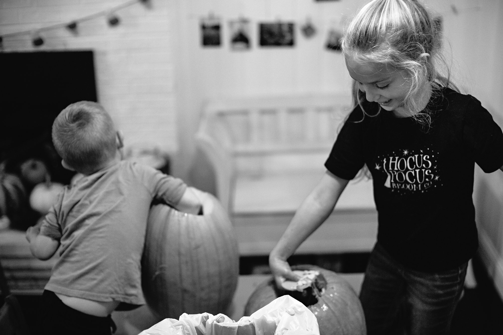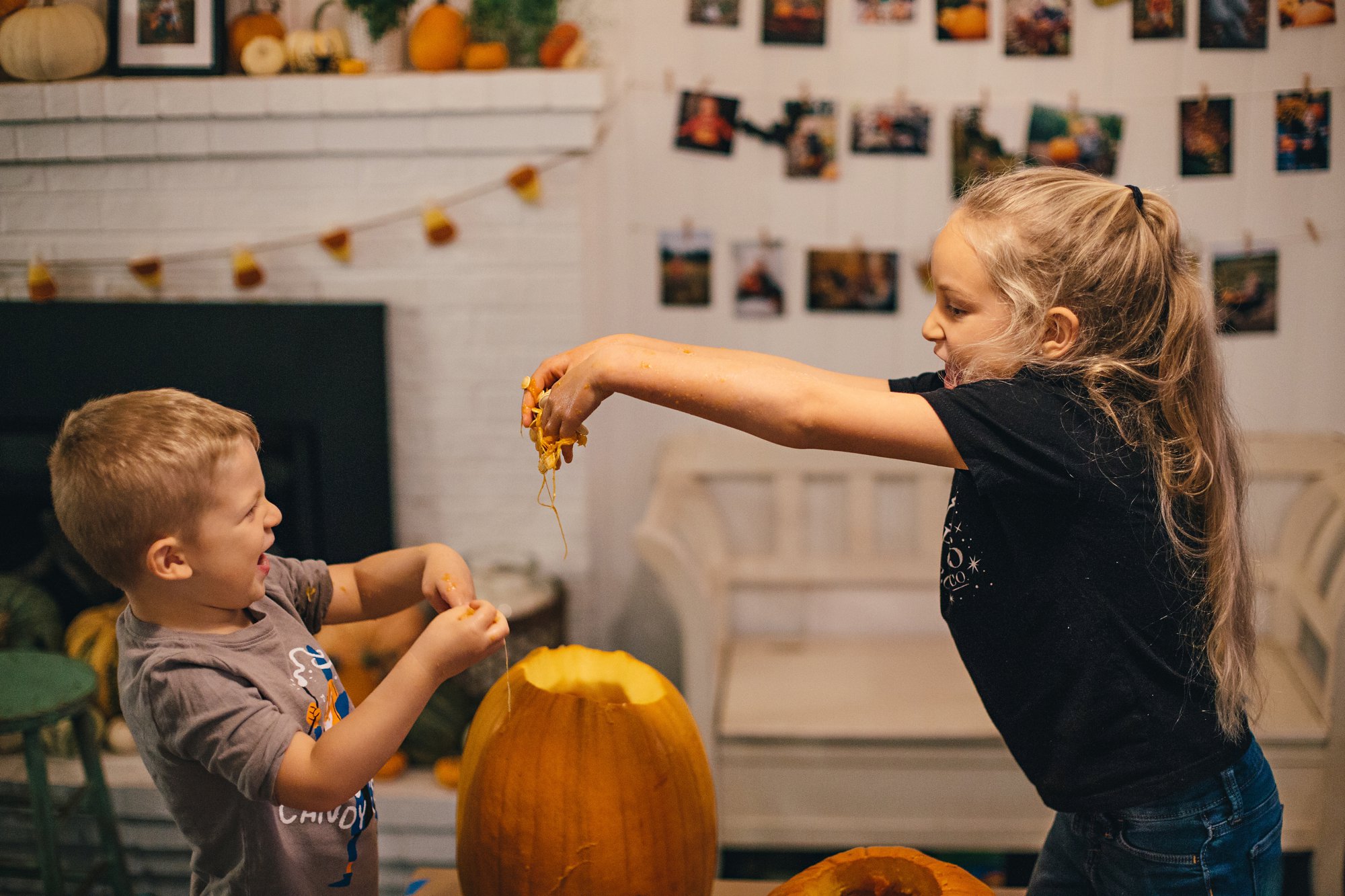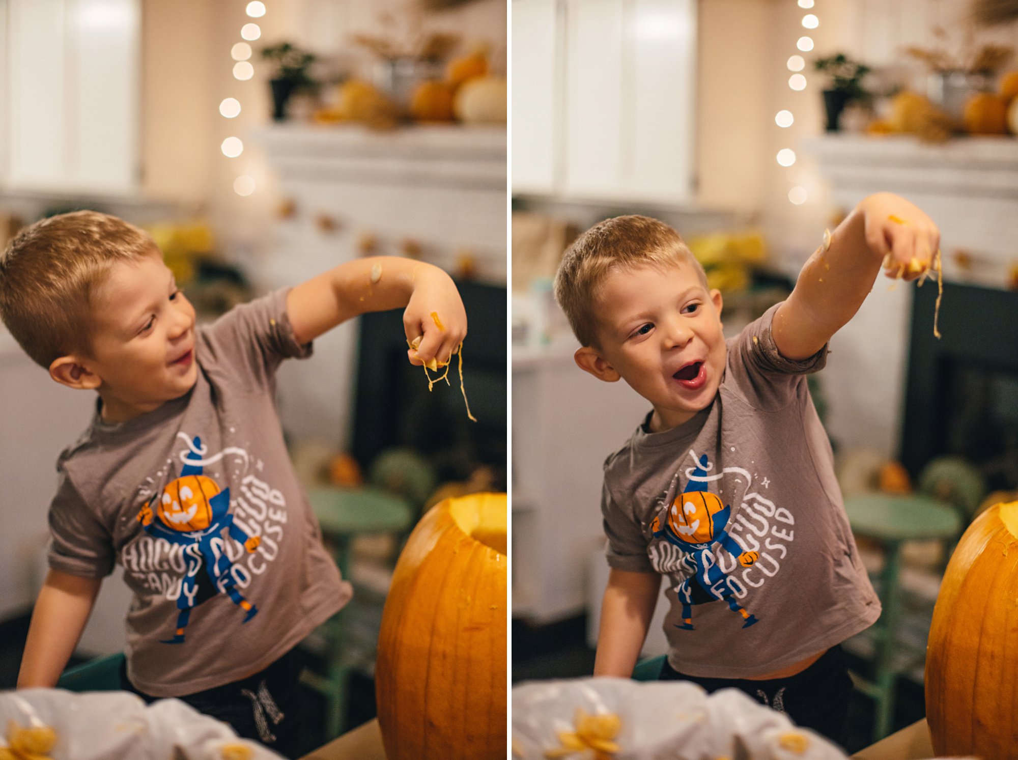 Pumpkin carving was super fun this year! The kids were so focused and eager to participate in every step of the process– even scooping out the seeds! In fact, I don’t think I have ever seen a more enthusiastic seed scooper than Cole! In the middle of it all, he looked up at us, fist-pumped, and exclaimed, “This is the best Halloween ever!”