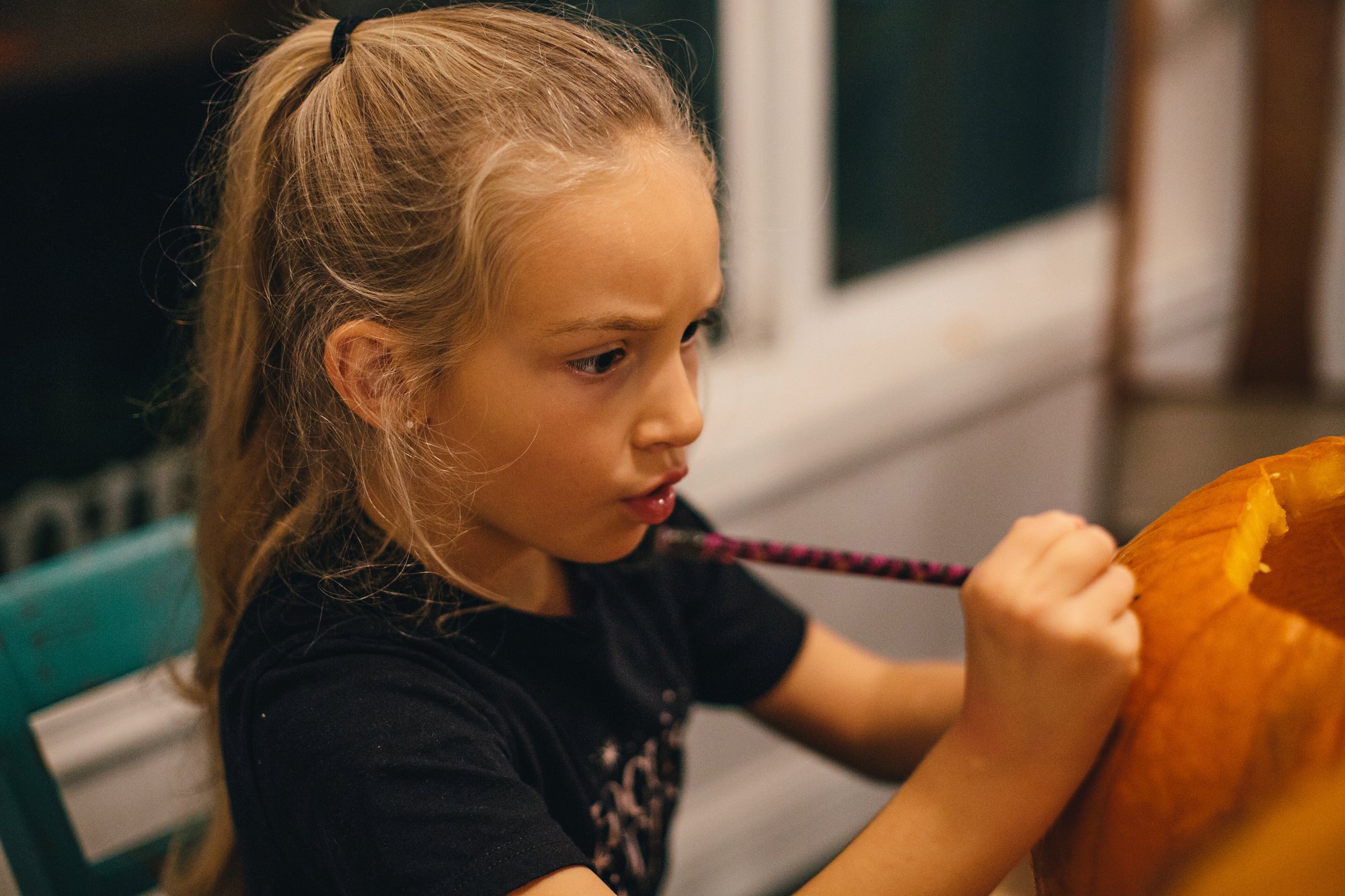 Isla’s passion for How to Train Your Dragon has spilled over into every aspect of her life right now, and she was determined to make a Toothless Jack-O-Lantern. She worked so hard to draw, and re-draw, her design until it was just right. She did most of the cutting by herself too!