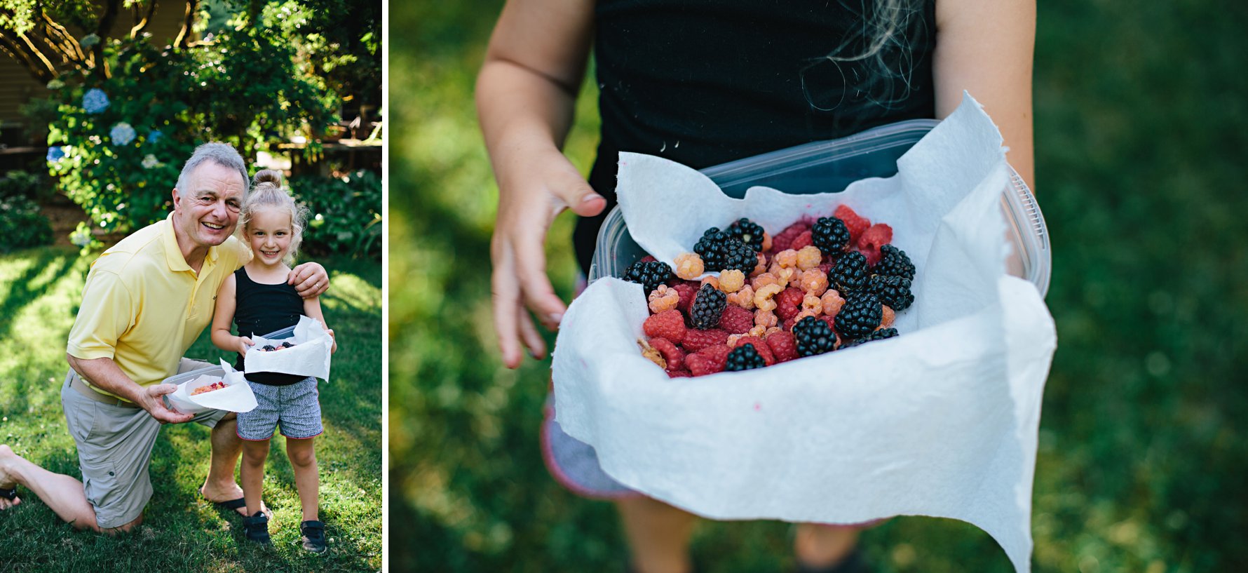 We spent the first half of July at the coast, so we barely made by the end of the season. Thankfully, just enough berries hung on for Isla and Gruncle! They started with the red raspberries and then moved onto the gold. To boost their haul a bit they also picked a few blackberries and blueberries. Per usual, just as many berries were consumed while picking as made it back inside the house.