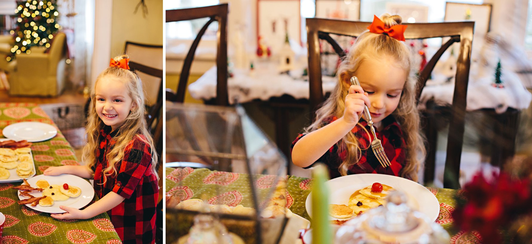 Taking 2 extra minutes to put some chocolate chip “eyes” and cherry “noses” in bowls before breakfast leads to festive reindeer pancakes! Isaac made small, medium, and large pancakes, which we stacked to make reindeer faces. Then we broke the bacon into pieces to make antlers. It’s amazing how a few tiny tweaks can turn the everyday into something really special and memorable.
