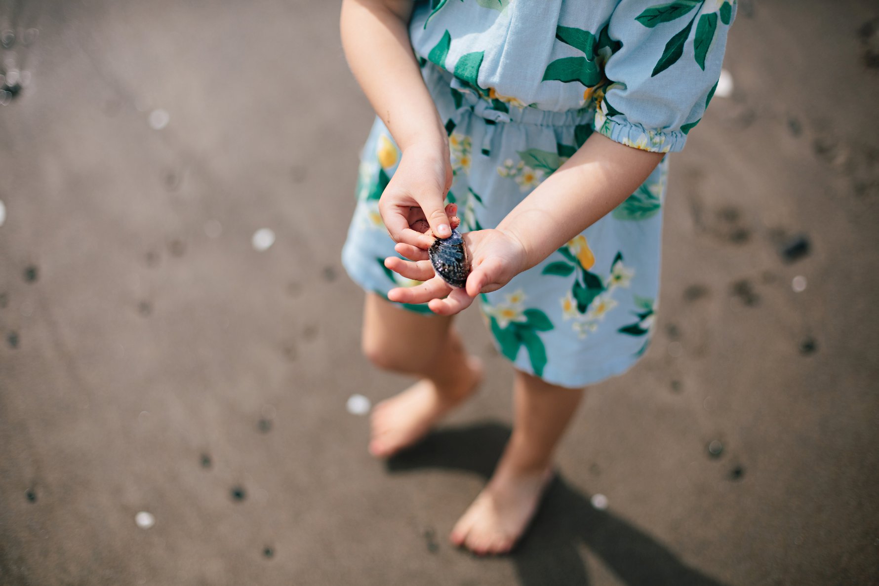 Isla was thrilled to discover two large clam shells and instantly squealed, “Look, Mom! Booby shells! Just like Ariel!” She then proceeded to describe her grand plan of taking them home, coloring them purple, and using tape and string to create her own “booby shell top” so that she could emulate her favorite mermaid. I love this kid and how quickly she can find inspiration to create. I also had to laugh when she began telling us about her project, because I also made my own seashell mermaid top when I was little.