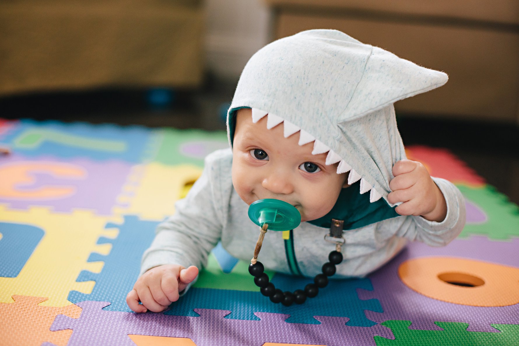 Love this sweet baby shark! He is getting so close to crawling! He gets up on his knees and rocks back and forth, and also scooches across the floor in an inchworm-like manner. We aren’t encouraging any crawling progress, however, because once this busy boy becomes mobile life for this mom and dad is going to get a lot more challenging! We’re savoring these last few days where we can set him down in one spot and know he will (more or less) remain there.