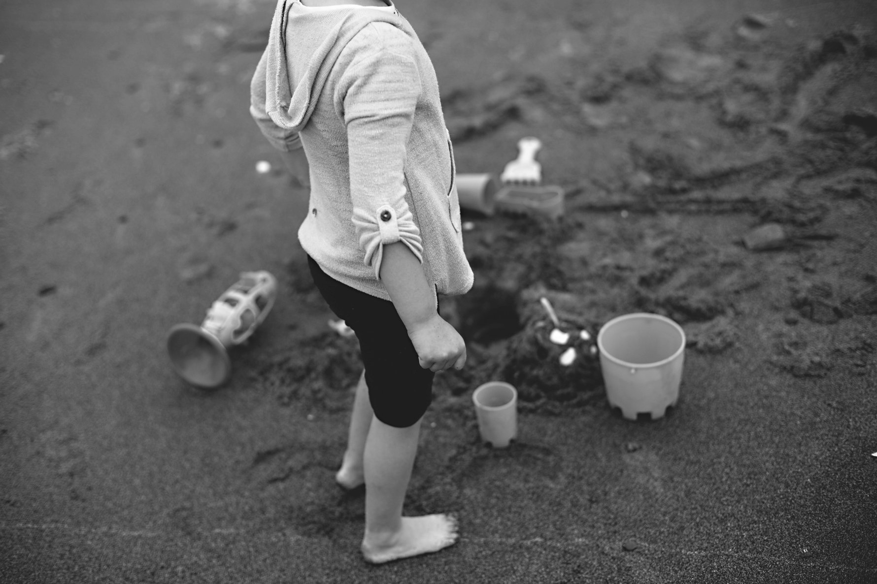 A quick morning beach visit. Isla brought her sand toys down and built a sand castle.