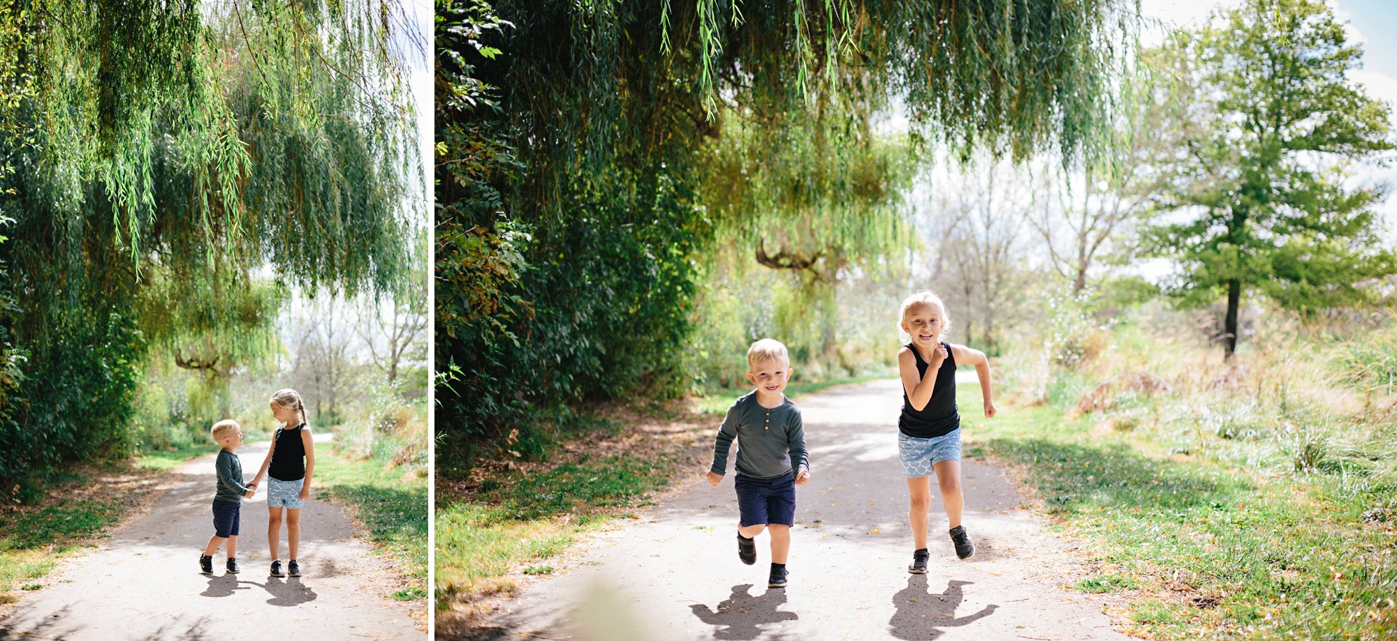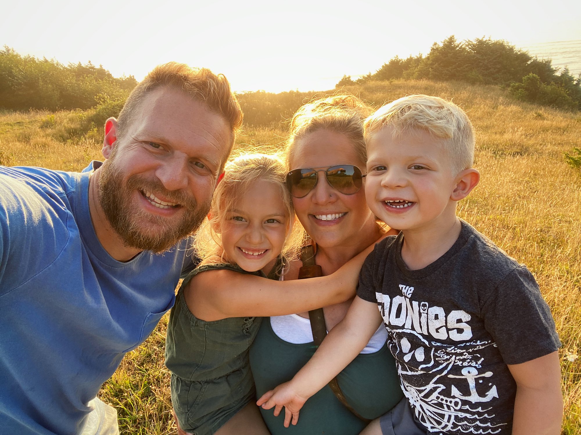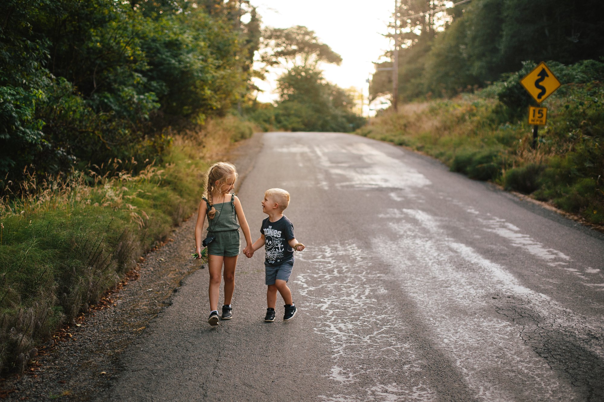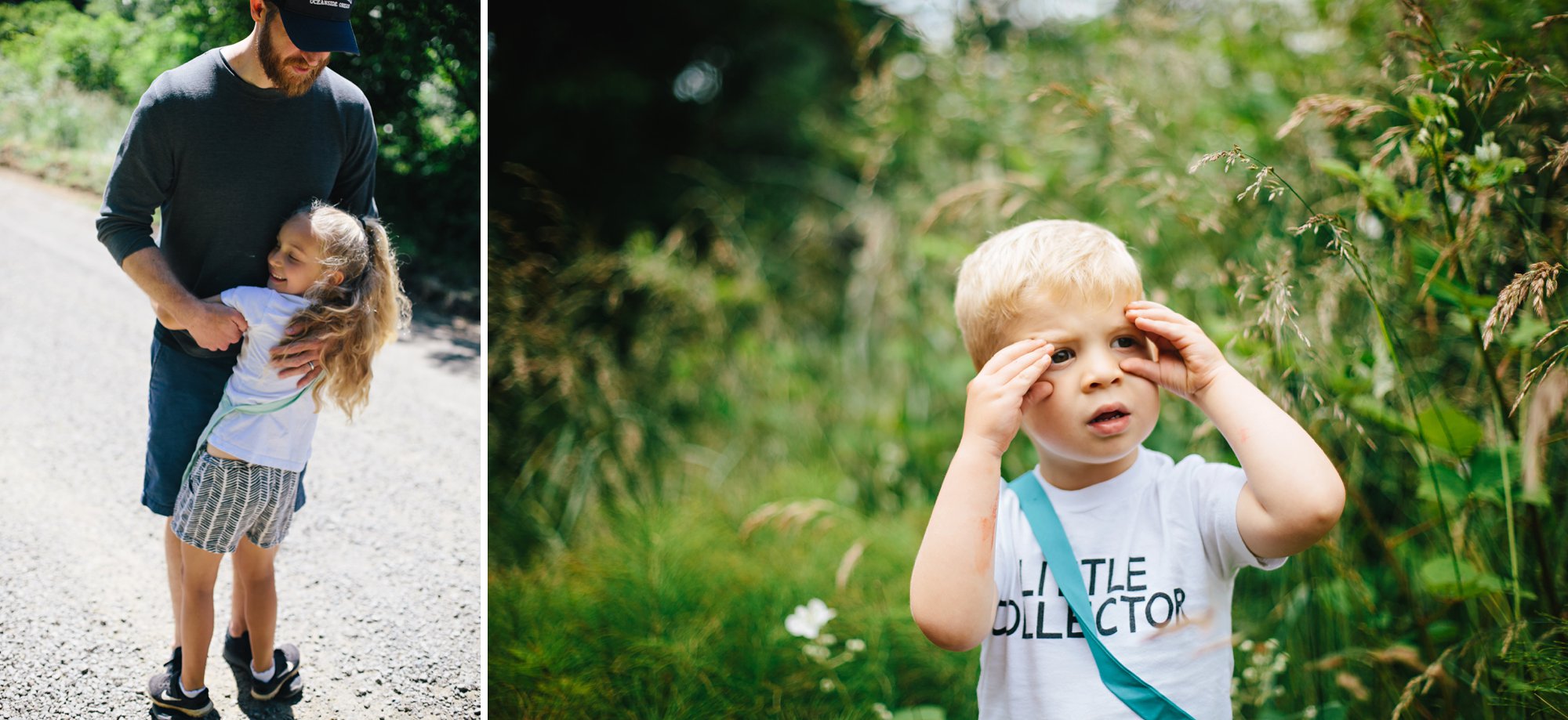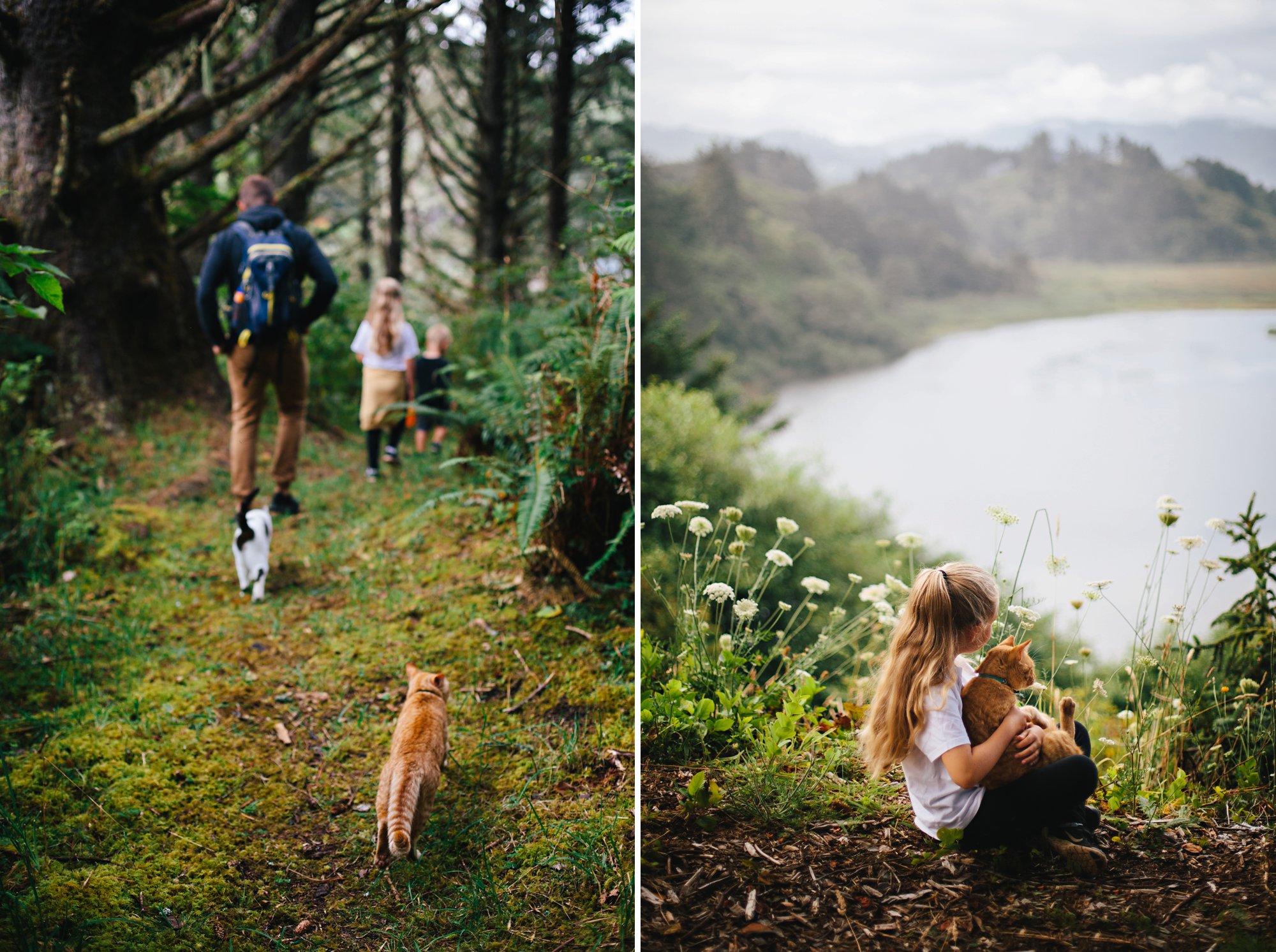 To commemorate this particularly happy stretch in time, we decided to take our family photos before the summer ended and highlight some of our most treasured pastimes from the last few months. As the sun began to set, we hiked up and over the hill to our favorite lookout spot, and then down onto the beach for a bonfire and, you guessed it, s’mores! As an added bonus, the cats joined us for the entire adventure— even on the sand! It was such a lovely evening, and the perfect way for us to bid farewell to the season. As we ascended the hill, Lauren took this photo, and my heart just about burst when I saw it. The connection, the familiar road, the sunlight streaming through the trees– this image so perfectly captures the feeling of our summer, and it fills my heart with sunshine.