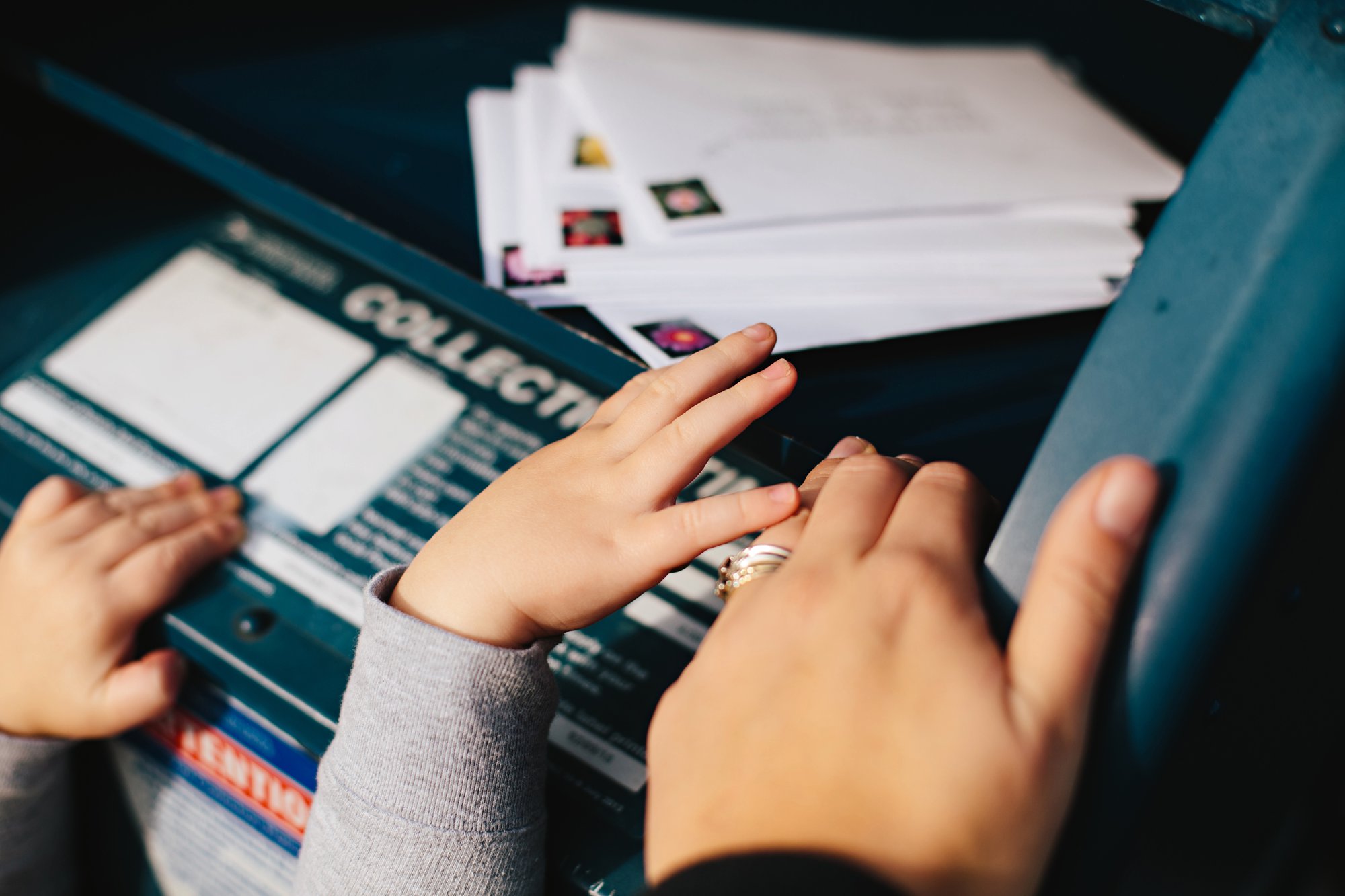 As children get older they can take on more responsibility for writing their thank you cards. Isla is beginning to write on her own, so she tackles smaller messages by herself. For the larger messages, she tells us what she would like to say and we write for her. Sometimes we ask her questions to stretch her thinking and produce a more thoughtful message. For example, if she thanks someone for a new art set and says she really likes it, we might ask her, “What about the art set do you like?” Then the letter goes from: Thank you for my art set. I like it. to Thank you for my art set. I like how there are so many kinds of brushes and that the paints are so colorful! Isla signs her own name, helps stuff and seal envelopes, and sometimes does the addressing. She also loves to drop her own thank you cards in the mailbox.