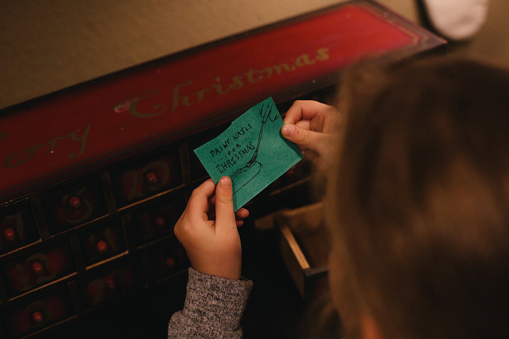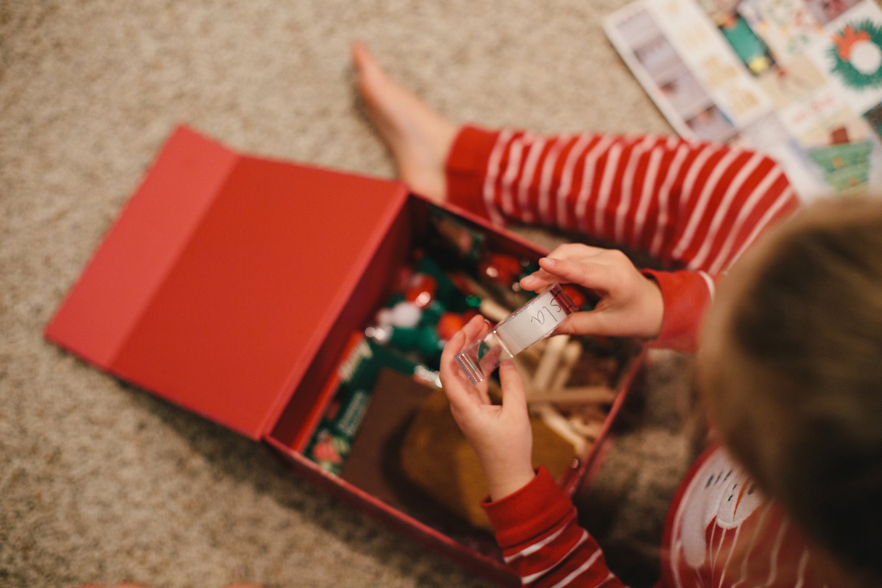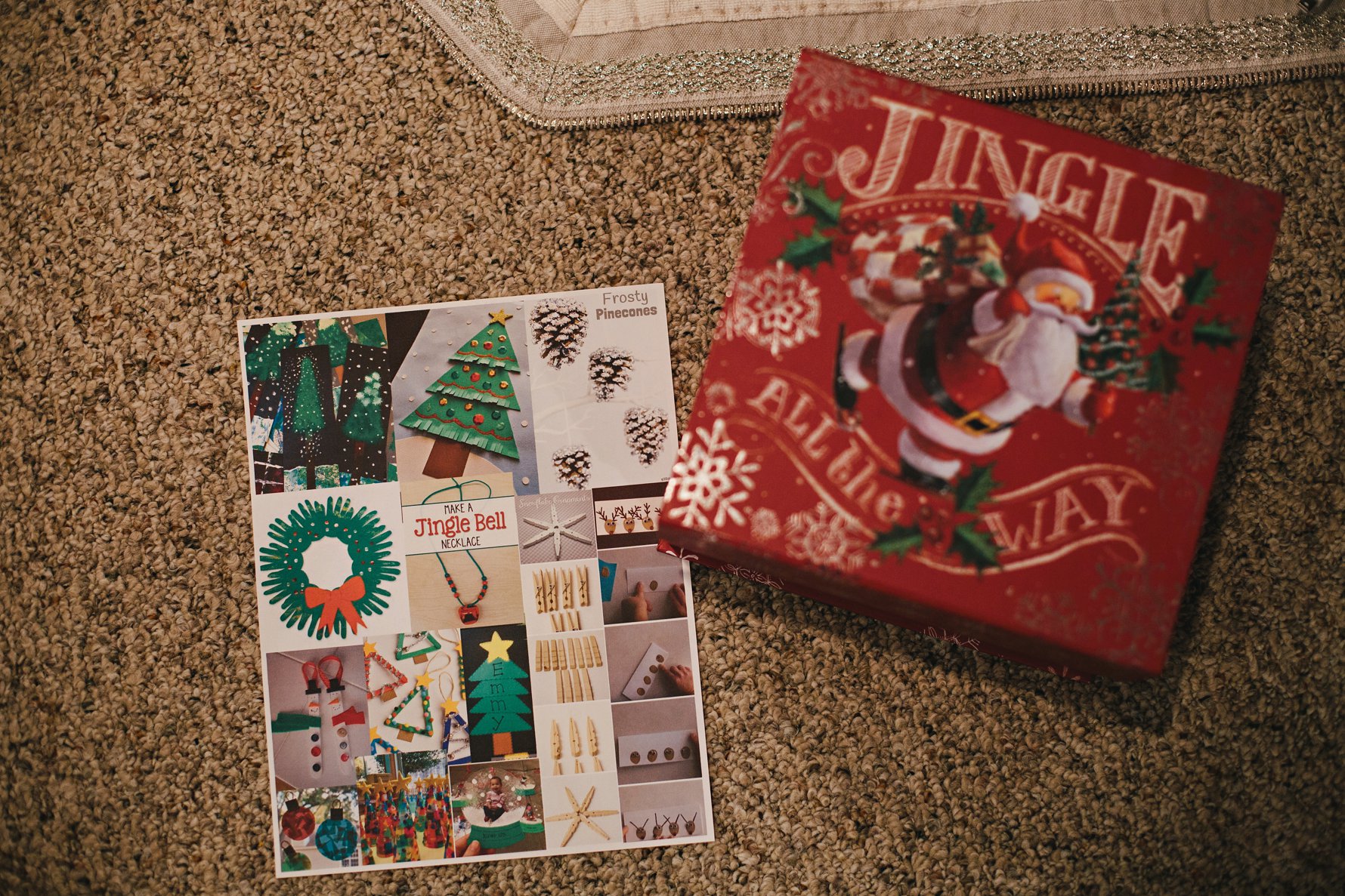 Cole’s musical book, Christmas Songs, was a HUGE hit! He thinks pushing buttons is great fun and he loves music, so it was the perfect combination. While he has played with musical books before, there was something about this one that totally captivated him. He started doing this hilarious dance we’ve never seen him do before, where he wildly swung his arms back and forth! He must have danced for a solid 15 minutes! It was SO great!Cole the Reindeer discovered the advent calendar one morning. He stretched way onto his tippy toes to reach it, and then proceeded to pull out as many of the drawers as he could!Advent Activity Day 3: Isla opened her Christmas Craft Box!Inside this year’s Christmas Craft Box: