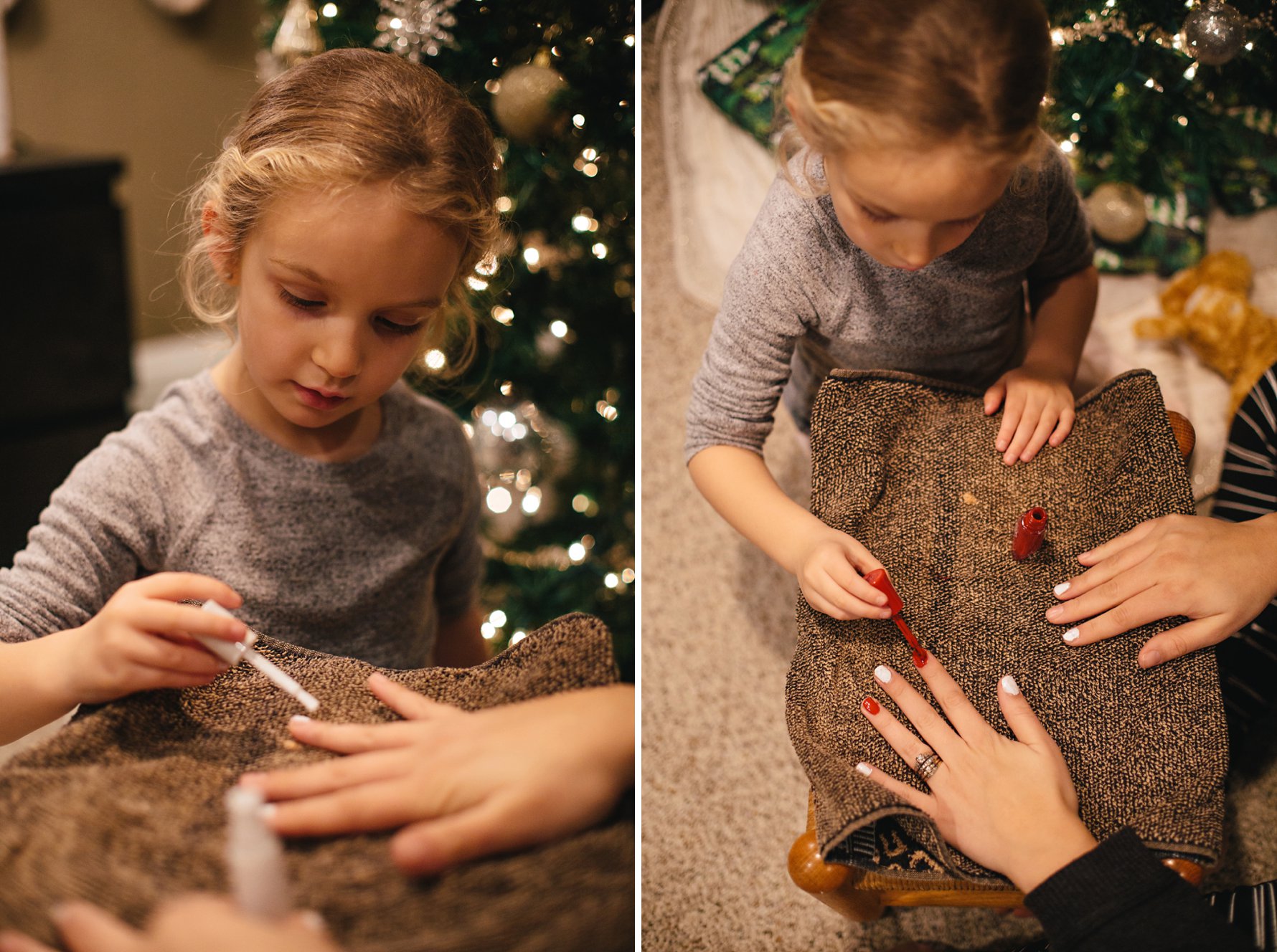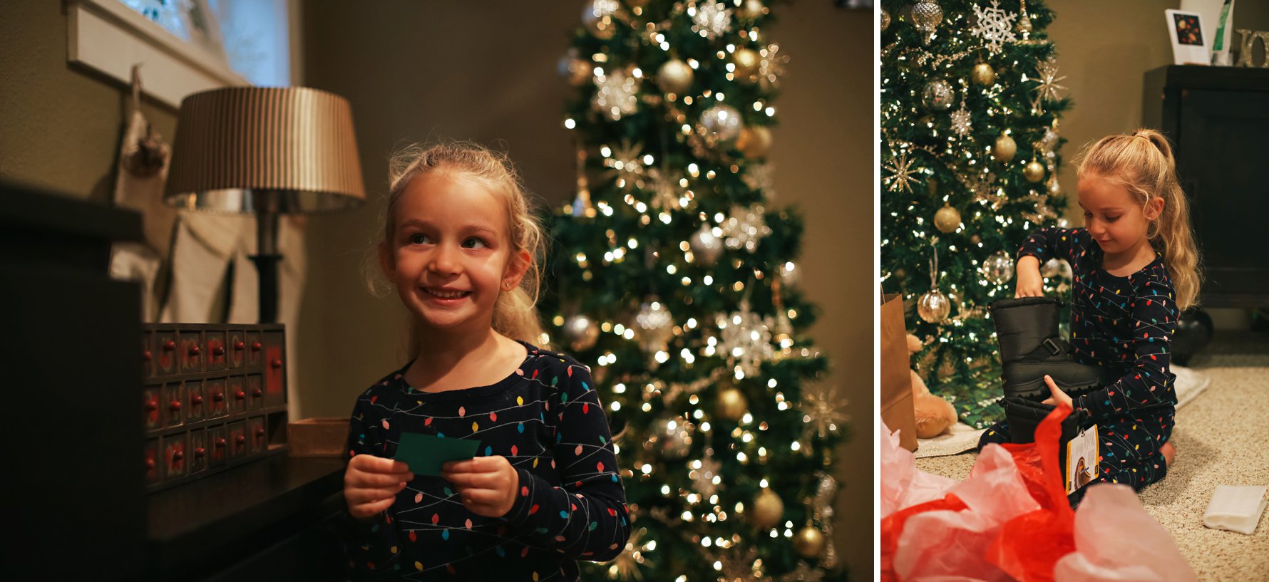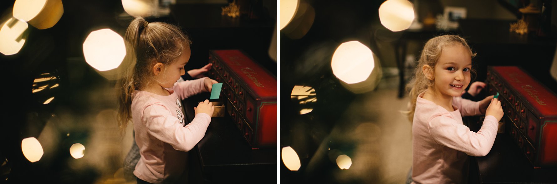 Cole’s musical book, Christmas Songs, was a HUGE hit! He thinks pushing buttons is great fun and he loves music, so it was the perfect combination. While he has played with musical books before, there was something about this one that totally captivated him. He started doing this hilarious dance we’ve never seen him do before, where he wildly swung his arms back and forth! He must have danced for a solid 15 minutes! It was SO great!Cole the Reindeer discovered the advent calendar one morning. He stretched way onto his tippy toes to reach it, and then proceeded to pull out as many of the drawers as he could!Advent Activity Day 3: Isla opened her Christmas Craft Box!Inside this year’s Christmas Craft Box: