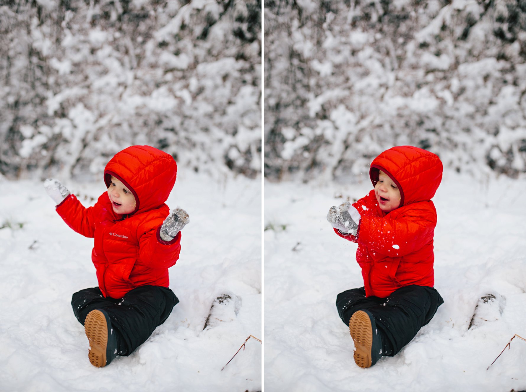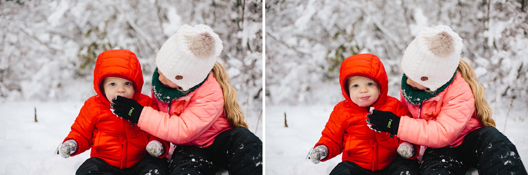 Isla even did her part to ensure Cole enjoyed eating the snow as well.He wasn’t so sure at first! His unimpressed face just kills me! Isla’s persistence paid off, however, as it wasn’t long before Cole was picking up snow, taking a bite and saying things like, “Mmmm!” and “Num num!”