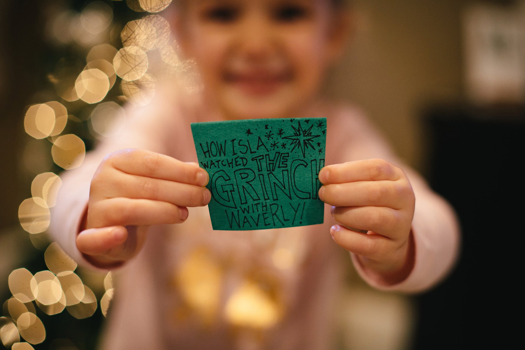 Advent Activity Day 4: We went to go see the new Grinch movie with cousin Waverly!Isla recognized the words, “the Grinch” all by herself and was so excited! THIS series, however, shows her reaction when she learned we were going to the movie with Waverly. This girl sure loves her cousins!