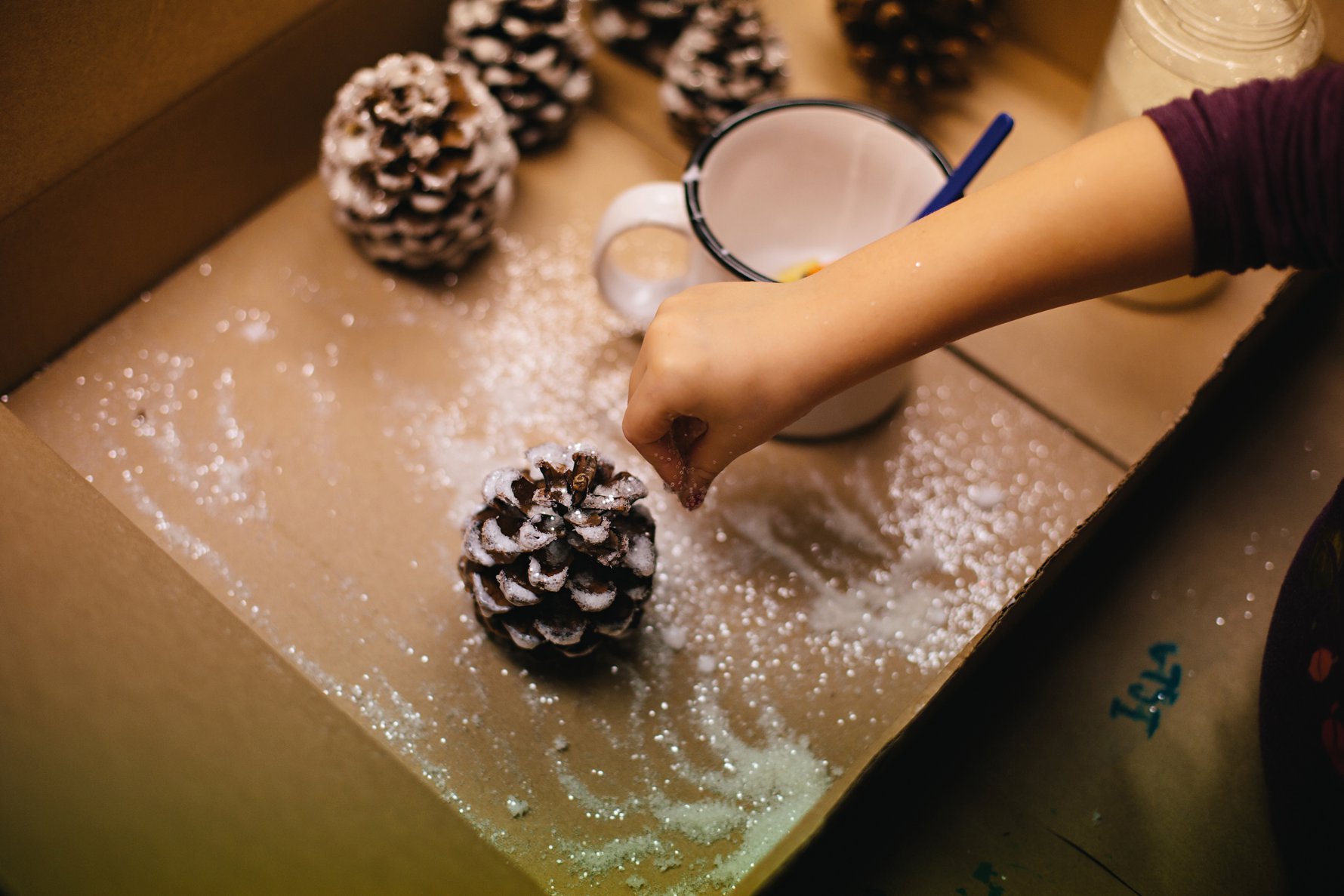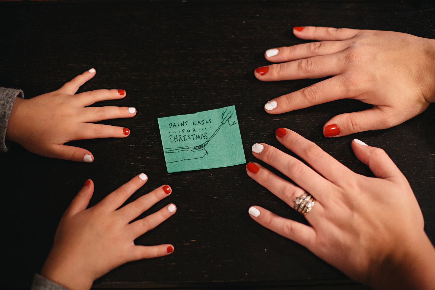 Last year I found this sweet angel ornament at an after Christmas sale. I stored it away, then wrapped it up for Isla so that she could have the excitement of opening it up. Pat! Pat! Pat! Isla had so much fun making birdseed ornaments for our neighborhood critters with her friends, Luke and Bellamy. We spent the evening with their family, listened to Christmas music, and ordered Teriyaki take out to keep things simple- we love how these advent activities help us spend even more time with people we love!  Thirty seconds after I handed Isla her birdseed ornament, she dropped it. I’m not going to lie, my initial reaction was to be annoyed. But then I quickly reminded myself that life happens! Since the ornament was no longer stable enough to hang, we decided to place it on the ground in an area where we’ve seen a lot of squirrels recently. Flexibility and problem solving: good life skills for kids to learn and grown ups to remember!Advent Activity Day 8: The Keizer Christmas Parade with Nana, Papa and the cousins!The cutest little row of parade-goers.While waiting for the parade to begin, Cole was so fascinated by the police cars blocking the start of the route, that he started WALKING towards them!!! We were totally shocked, as he has shown little to no interest in walking so far. He has maybe taken 2 or 3 teeny consecutive steps in the past, but nothing like this! We all cheered Cole on, but he kept his eyes fixated on the cars, calling out, “Beep! Beep!” It was absolutely amazing!!! The milestone was made even more meaningful being surrounded by family. Cole walked all the way to the police cars, where the officers greeted him enthusiastically and told us they had been watching him walk. So sweet! This progression of Isla seeing Santa at the parade is EVERYTHING! How do we bottle this precious sense of wonder and keep it forever?!Advent Activity Day 9: Ice skating with Wavy!The girls and dads had a great time on the ice together, and Isla was so excited to show her cousin all she’s been learning during her ice skating lessons.Cole is always intrigued by the ice skaters. Recently, however, Isaac introduced him to one of those coin operated car rides near the ice rink, so now after a few minutes of watching Isla skate, Cole turns to me, eyes wide and hopeful, and asks, “Beep, beep, car?”Advent Activity Day 10: Painting candy cane nails! I felt pretty worn down on Monday and actually spent most of the day in bed resting, so I was needing a simple advent activity that evening. Painting candy cane Christmas nails was just perfect! I had just planned to paint Isla’s nails, but she asked to paint mine for the first time and she was so excited about the idea I couldn’t say no!Advent Activity Day 11: Reindeer Pancakes with Piper!We made reindeer pancakes for the first time last year and it was such a fun and simple activity. Make large circular pancakes for the head, medium circular pancakes for the muzzle, and small oval pancakes for the ears. The kids can decorate their reindeer with chocolate chip eyes, cherry nose, and bacon antlers.The parents decided it would be fun to treat ourselves to a decadent brunch for dinner. We made fried chicken and waffles with maple syrup, bourbon whipped cream, and candied bacon. All served alongside festive forties! It was AMAZING! We all agreed a new tradition was born that night!Teaching Cole to play Shut the Box. Advent Activity Day 12: Make Snowy Pine Cones! A little messy, but a super simple, sparkly, and quick winter craft. Use little sponge brushes to paint Elmer’s glue on the edges of a pine cone and then douse it in glitter! We put a large, shallow cardboard box (this time of year we all have extra Amazon boxes laying around, right?!) out on the craft table and set all the supplies inside. It helped us keep the glitter and glue mess completely contained.We had so much fun using a few of these pine cones in another fun craft we’ll share with you soon!