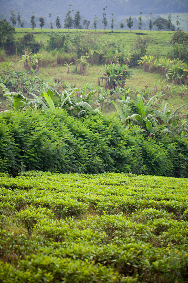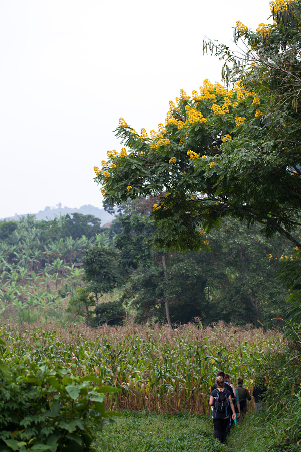 Later in the morning we laced our hiking boots for a walk through the tea plantations and surrounding park land. Our guides, James and Ignacious, were both kind and knowledgeable in the process of tea harvesting and the local flora. When the tender leaves are harvested, 2 1/2 leaves are plucked at a time. This amount is referred to as “mbili nanusu.” Men usually do the harvesting, while women and children weed, maintain and fertilize the plants. They cover the plants in hay or banana leaves to protect them from the harsh sun. During the harvest season, the dry season, the harvesters rotate through the fields and visit each once a week. The back-breaking labor of harvesting tea leaves only pays approximately 70 Ugandan shillings per kg. The seasoned picker can gather upwards of 100 kg of tea leaves each day. Interestingly, most of the tea harvested in Africa is exported to India, and then sold as Indian tea. As expected, most of the team farms in Africa are owned by Indian families.