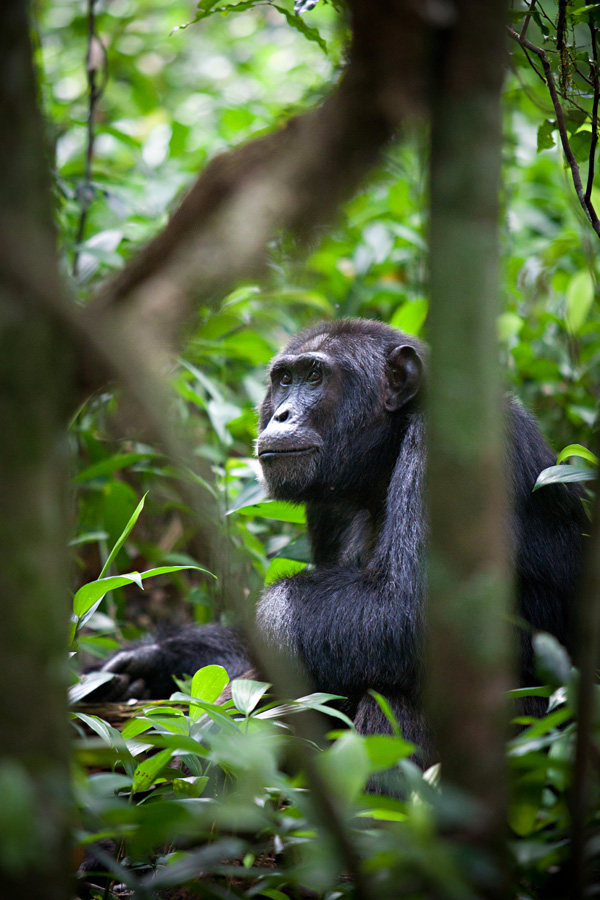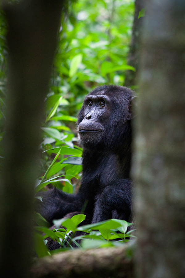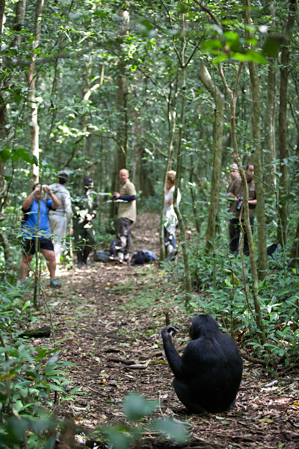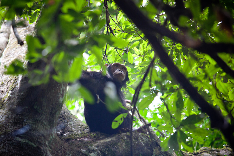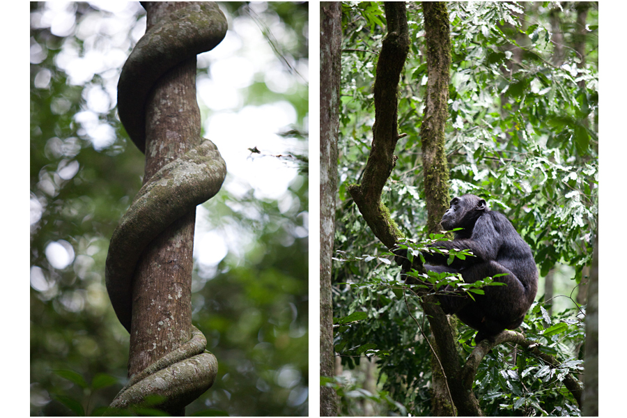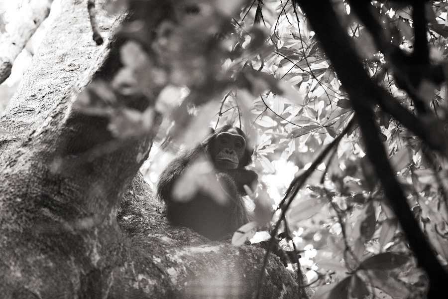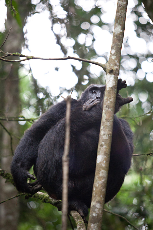 All too soon, our time with the chimpanzees came to an end, as they climbed- almost effortlessly, it appeared- high into the tree tops. There, they crashed about, sending branches and leaves sailing down to the forest floor, as they hooted, foraged, and socializing amongst themselves.