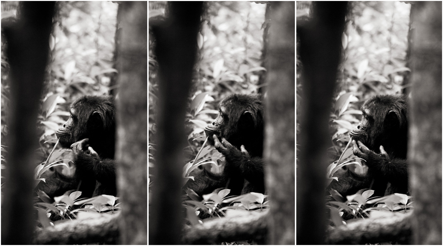 As you can see, we were able to get amazingly close to the chimpazees. While they are still wild animals, they have become habituated to the presence of humans, and so they are quite comfortable with all of us lurking about and taking photos. Of course, our guides were very vigilant and ensured that the visitors did not cause any stress or alarm to the chimps.